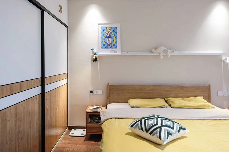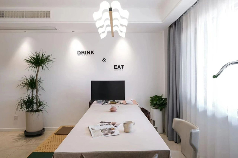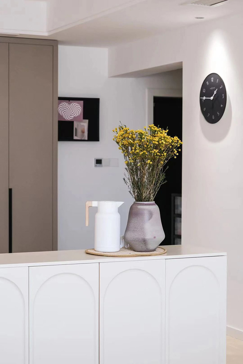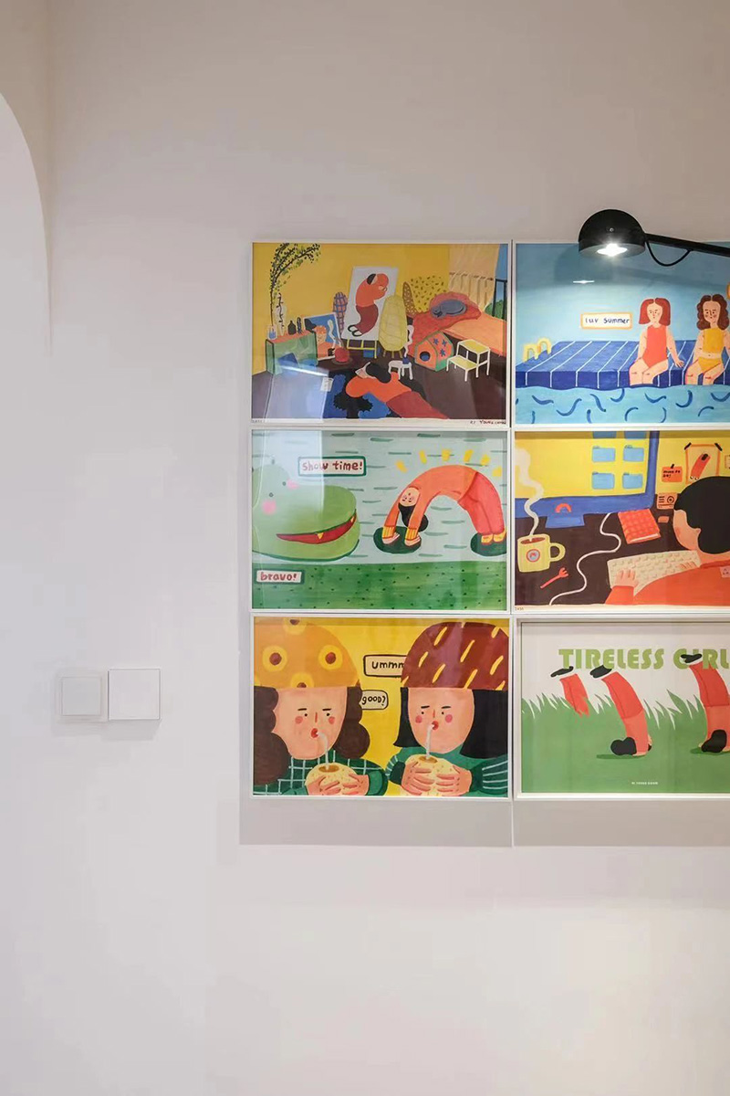 同样 以文化和生活作为空间装饰的主要材料是我们设计团队的座右铭。在形形色色的设计案例中,房子面积总有更大的,装修用料总有更奢侈的,我们从不会以这些为追求。家居空间作为日常生活起居最主要的载体,最需要的是植入我们最真实的情感,亦如插画入皿,大燕归巢。这样的设计不论手法是否高明,材料是否贵贱都是我们心中最好美好的样子。(在最终效果呈现后我们的一轮满意度访问中,业主对施工和装饰搭配效果非常满意,唯一最大的遗憾就是当时为了节省成本没有换地砖和地板,在画面中能很明显的感觉到艺术中常带有的缺陷美)