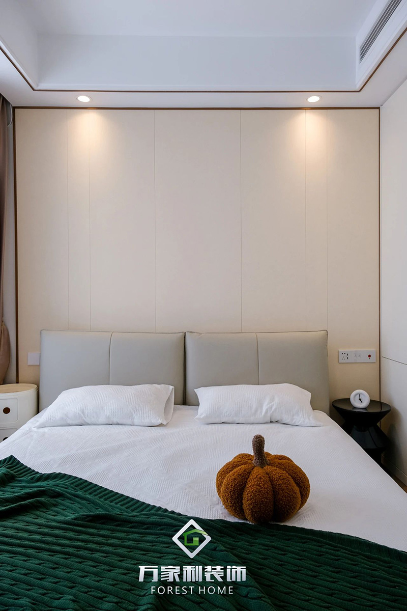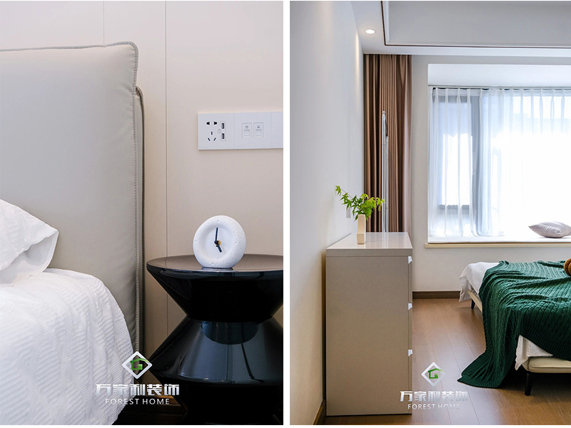 白色和绿色床尾巾交相呼应,赋予主卧空间高贵典雅的气质。