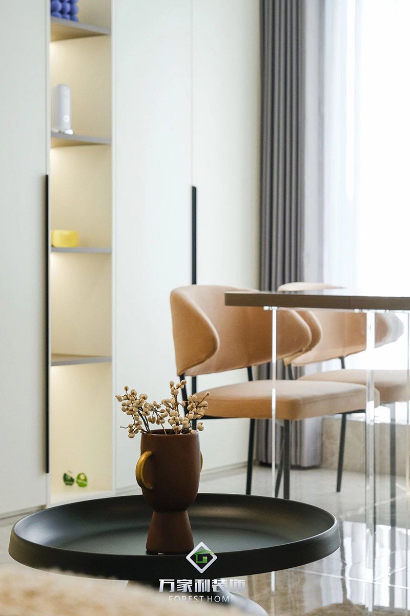 打破空间的沉闷,明亮的色调让心情飞扬。皮、布肌理的床头,拥有柔软的天然属性,给人以蕴藉的抚慰。