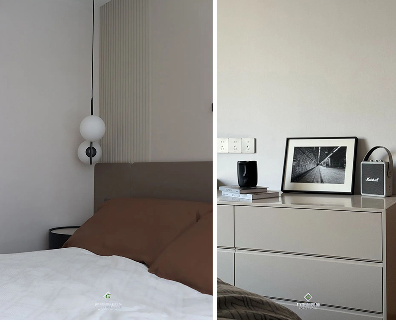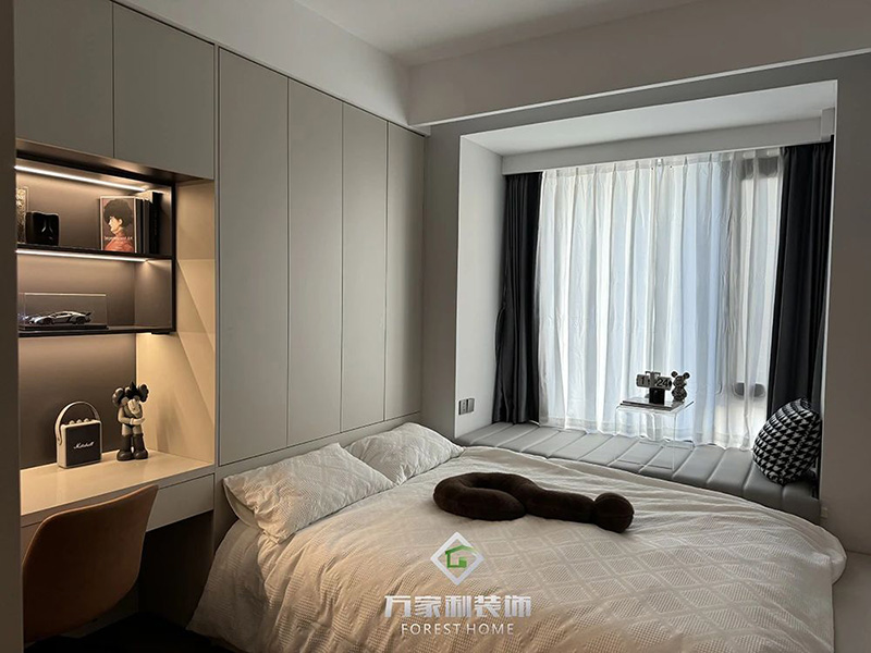 主卧延续了客厅的装修风格,搭配精致的细节,展现出低调的奢华,飘窗的设计,无论是阅读、休息还是享受私人时光,这里都是你最理想的空间。