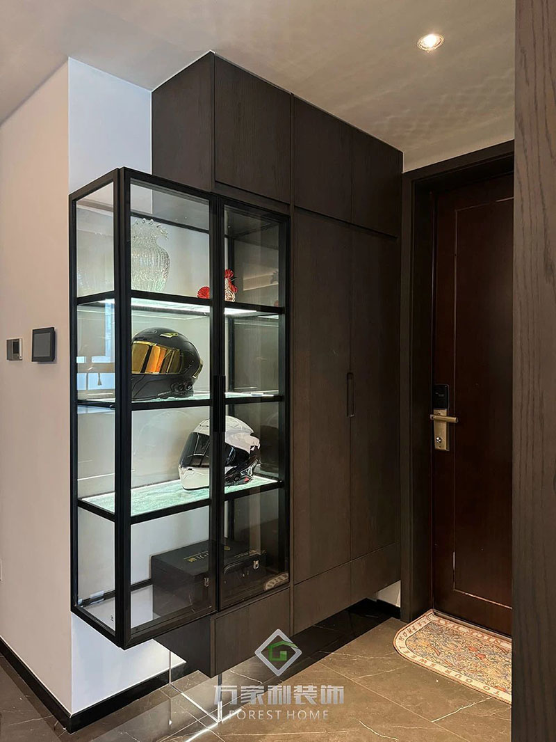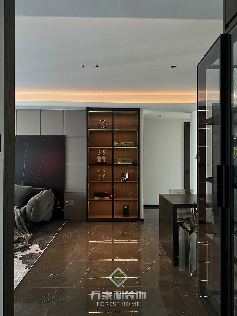 这是一位男士专属空间,他追求生活的质感与情调,享受一杯佳酿带来的平静时光;他是追逐速度与自由的探索者,摩托车承载着他对未知世界的渴望。设计师以现代暗黑风为基调,打造了一个充满个性与质感的家。