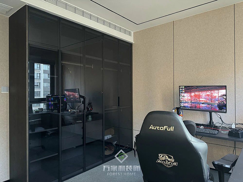 走进设计师精心打造的电竞房,仿佛踏入了一个充满未来感的科技世界。舒适的电竞椅,贴合人体工学设计,让男主人在游戏中尽享丝滑流畅的操作体验,释放压力。