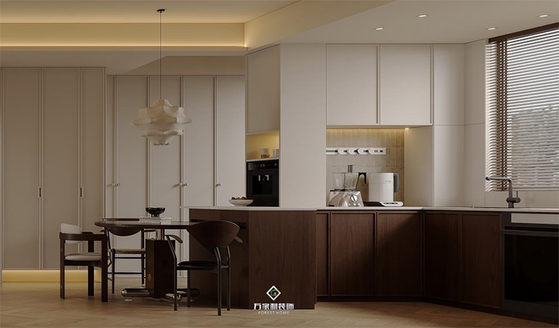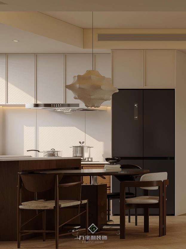 阳台客厅打通更加开阔,采光更好。餐厅厨房一体化,餐桌+岛台实用性超赞,最大化利用空间,增强使空间的体感量。