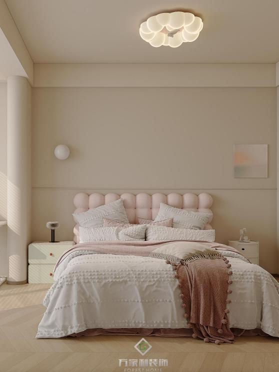 女儿房整个房间以柔和的奶油色打底,营造出温馨又治愈的氛围床具选了粉色的,不张扬却足够吸睛,为空间注入甜美气息。