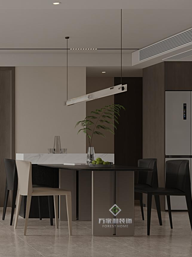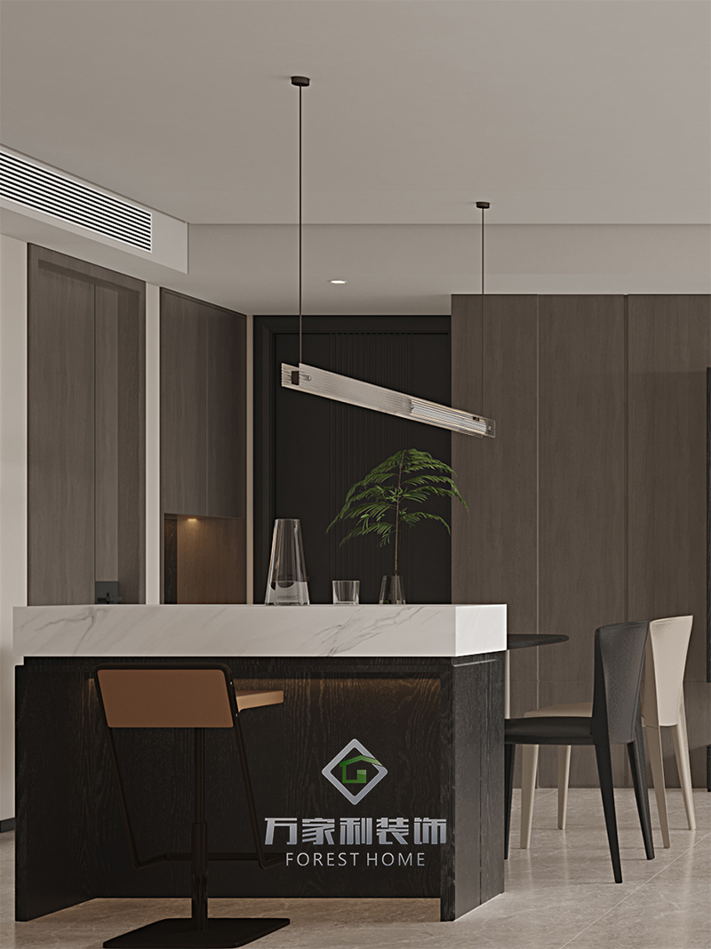 餐岛一体的设计是这种风格的核心,将餐厅厨房合二为一,不仅让空间看起来更加通透,还让家庭成员之间的互动更加便捷。再这样的设计中,岛台既可以作为烹饪台,又可以作为家庭聚餐的餐桌,一物两用,实用又方便。